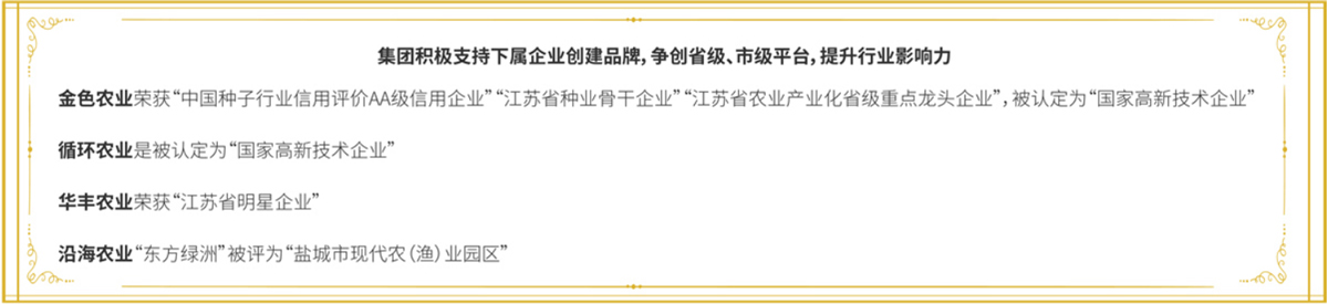 公司除開展日常經(jīng)營業(yè)務(wù)外,還高度重視農(nóng)業(yè)科技運用,孵化培育有國家高新技術(shù)企業(yè)2家,設(shè)有1個博士后工作站、3個研究生工作站,建有農(nóng)業(yè)部可再生能源清潔化利用實驗基地、江蘇省優(yōu)質(zhì)稻麥工程技術(shù)研究中心、鹽城市工程技術(shù)研究中心、鹽城市市級企業(yè)技術(shù)中心、鹽城市農(nóng)機化科技示范基地,已通過國家、省級審定品種20個,申報各類專利84項,不斷探索和應(yīng)用現(xiàn)代農(nóng)業(yè)科技,為傳統(tǒng)農(nóng)業(yè)賦能增效。