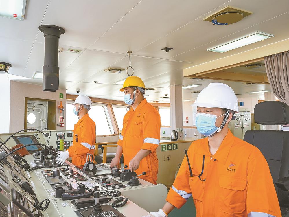 “黃海拖01”緩緩靠泊鹽城港濱海港區(qū)