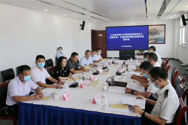 8月2日,鹽城港保稅物流中心進境肉類、水果綜合型指定監(jiān)管場地順利通過省級驗收。鹽城海關(guān)副關(guān)長李健、大豐區(qū)商務(wù)局副局長施曉鐘、鹽城港集團總經(jīng)理助理孫永峰、大豐港集團及鹽城港保稅物流中心等相關(guān)負責(zé)同志參加。