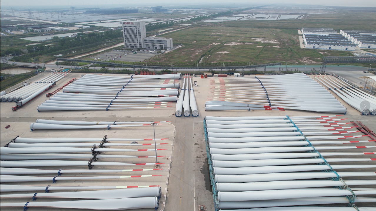 連日來,在鹽城港射陽港區(qū),一輛輛大件運輸車將36套110米超長風電葉片運往碼頭,這些“鹽城制造”正紛紛從港口走出去。