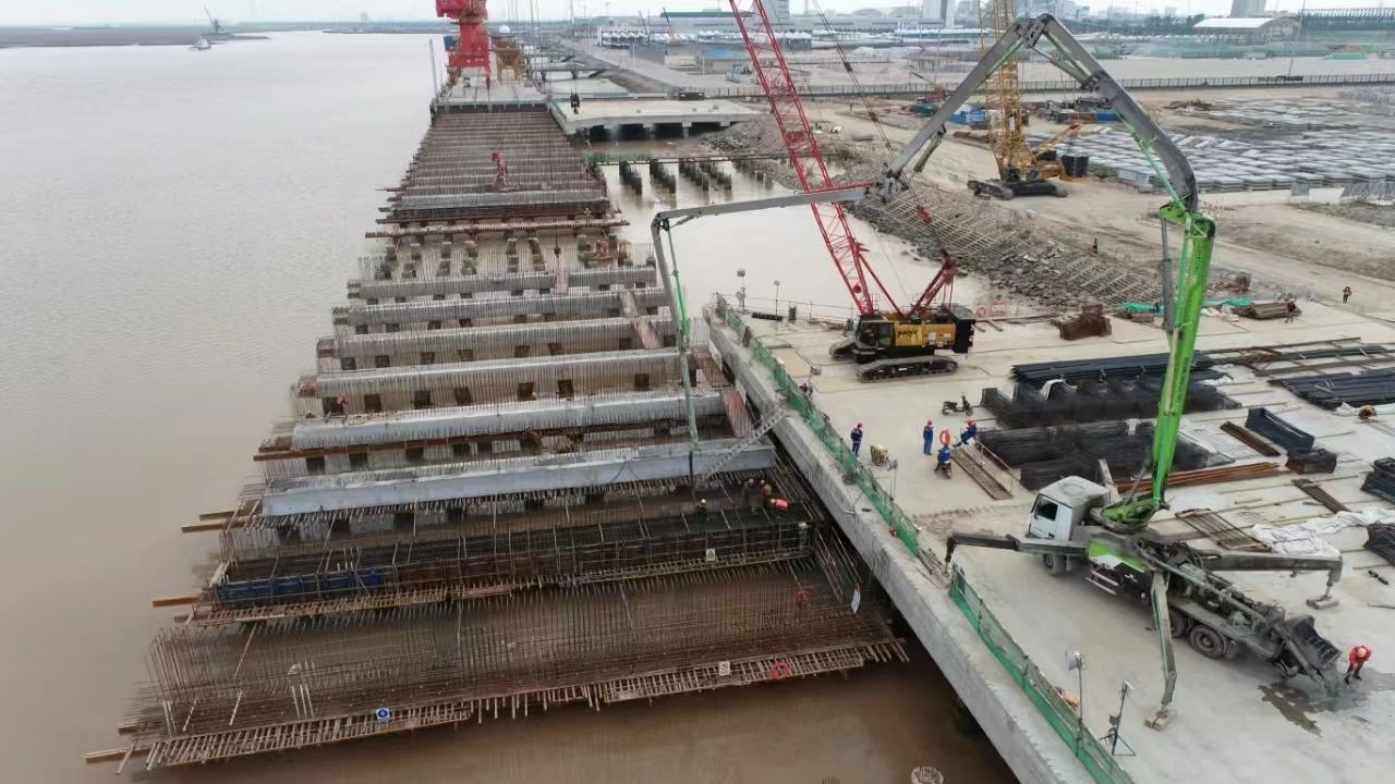 強勁增長背后,是專業(yè)化碼頭集群的加速成型。依托得天獨厚的“風光”資源,鹽城港射陽港區(qū)針對風電設備運輸?shù)奶厥庑枨?,主動提級擴能,正加速推進四期工程建設,為外貿(mào)出口按下“加速鍵”?!案脑旌笠龢驅挾仍黾?0%,可滿足150米級超長設備運輸需求?!表椖控撠熑藯顣云浇榻B,根據(jù)建設計劃,碼頭水工結構預計于今年年底竣工,項目全面運營后,年運輸能力可達250套整機和400套葉片,將充分保障港區(qū)風電產(chǎn)業(yè)的長遠發(fā)展需求。