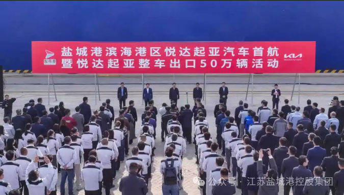 11月15日上午,悅達起亞整車出口第50萬輛裝船起航儀式在鹽城港濱海港區(qū)舉行,這也是悅達起亞汽車自大豐港區(qū)出口以來開通的新出海航線。市長嚴漢平出席儀式并宣布起航。