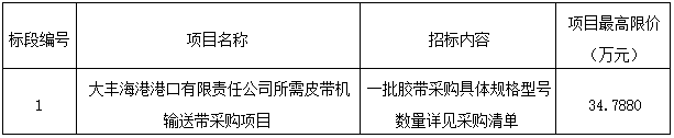 (1)項(xiàng)目名稱:大豐海港港口有限責(zé)任公司所需皮帶機(jī)輸送帶采購項(xiàng)目