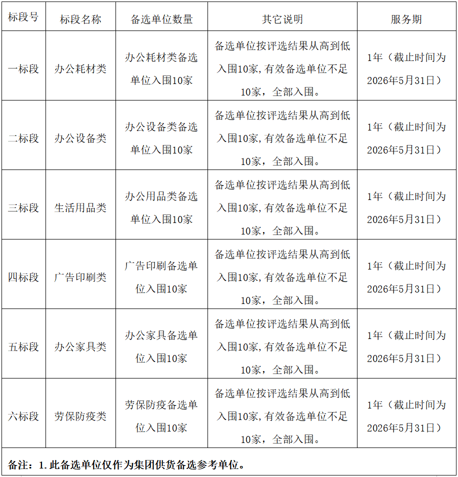 2、本次招標項目共分為六個標段,標段名稱及備選數(shù)量如下: