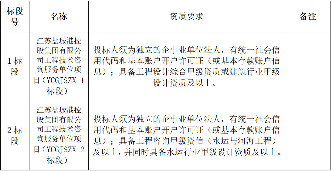 江蘇鹽城港控股集團(tuán)有限公司因工作需要,現(xiàn)通過公開招標(biāo)方式,選擇技術(shù)咨詢服務(wù)單位,請(qǐng)潛在的投標(biāo)人參加本服務(wù)采購的投標(biāo)報(bào)名,現(xiàn)就有關(guān)事項(xiàng)公告如下。