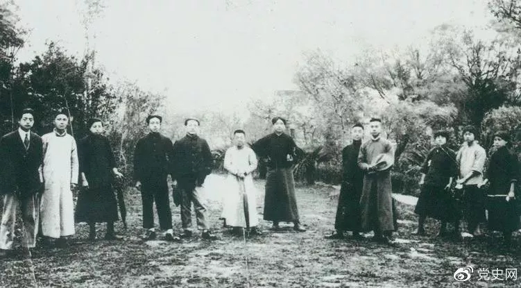 1920年5月8日,新民學(xué)會(huì)部分會(huì)員在上海半淞園合影。左七為毛澤東。