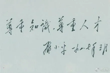 鄧小平1987年5月的題詞:尊重知識(shí),尊重人才。