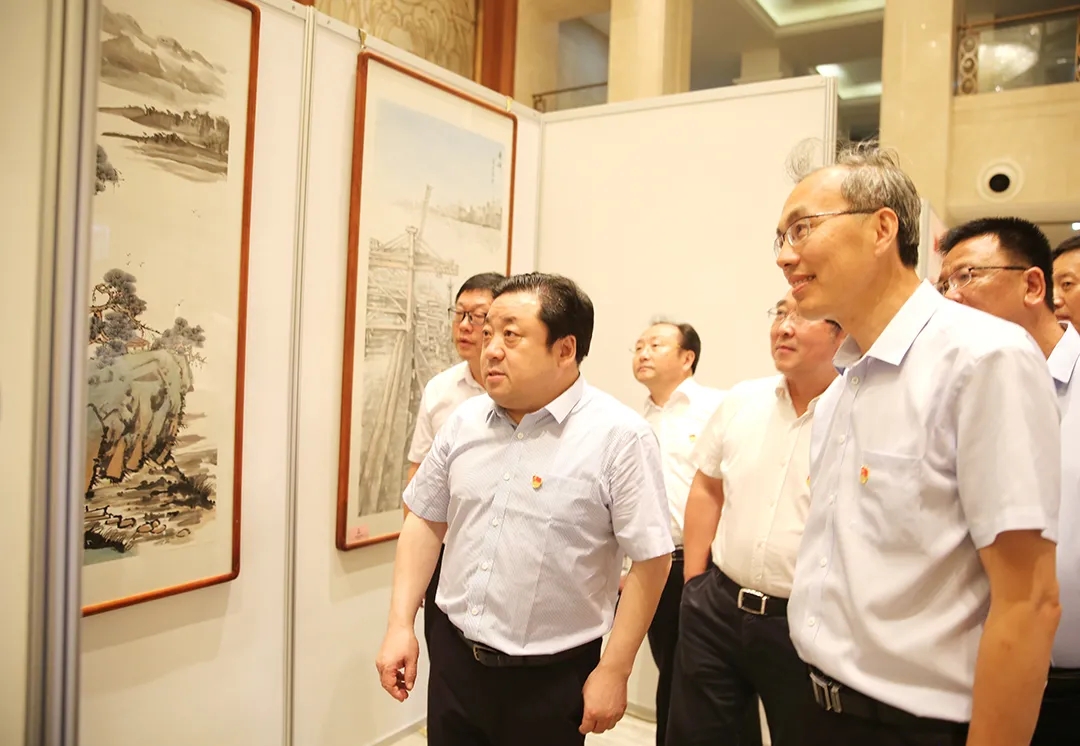 晚會開始前,周正雄還帶領(lǐng)與會人員參觀了集團(tuán)職工書畫展。本次書畫展參展作品內(nèi)容豐富,形式多樣,立意新穎,用書畫定格歷史瞬間,串聯(lián)起波瀾壯闊的百年征程,呈現(xiàn)出個性獨(dú)特的藝術(shù)魅力,蘊(yùn)含著飽滿熾熱的藝術(shù)激情,具有較強(qiáng)的藝術(shù)震撼力,受到了大家的一致好評。