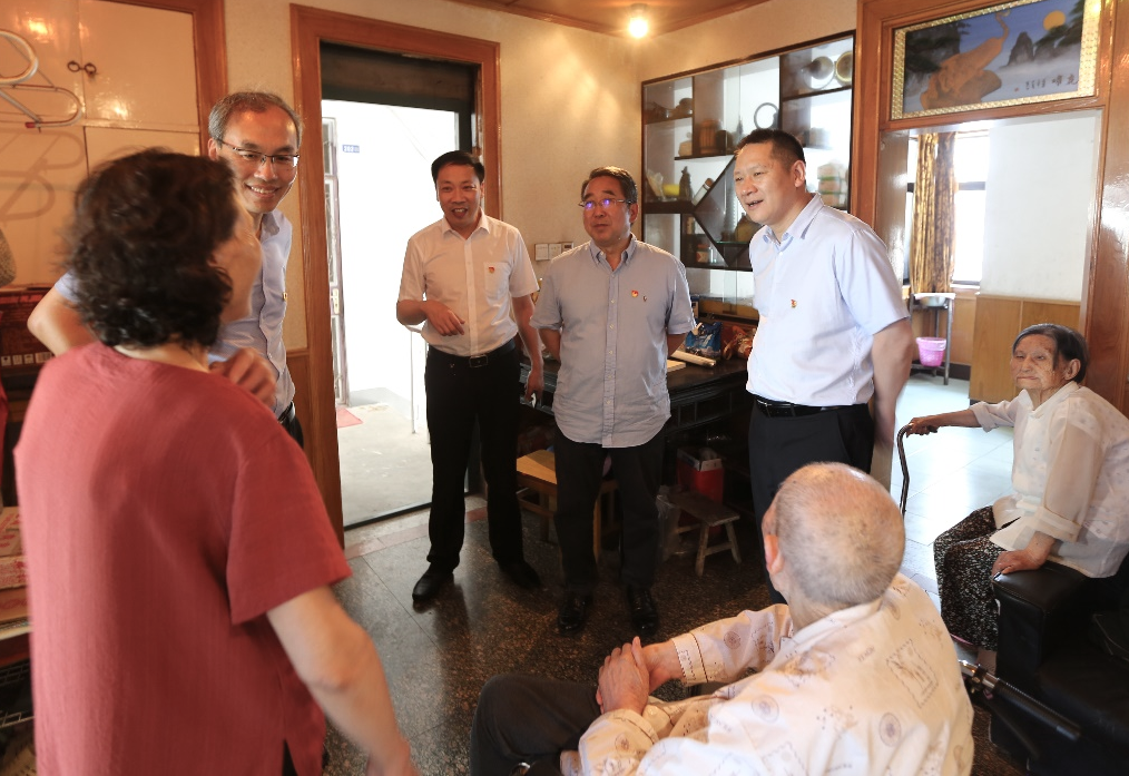在建國前入黨老黨員奚正銀老人家中,陳正華看到97歲的老人身體硬朗、精神矍鑠,感到十分高興。他握著老人的手認(rèn)真詢問老人的生活及兒女就業(yè)工作情況,并為老人戴上“光榮在黨50年”紀(jì)念章,送上慰問金,感謝他長期以來為黨和國家作出的積極貢獻(xiàn),并囑咐他保重身體。同時,陳正華還要求隨行青年黨員積極向老同志學(xué)習(xí),定期上門開展志愿服務(wù)活動,陪伴老黨員、傾聽他們曾經(jīng)的故事,在向革命前輩學(xué)習(xí)革命精神的同時,將黨最新的方針政策、會議精神及時傳達(dá)給老黨員。