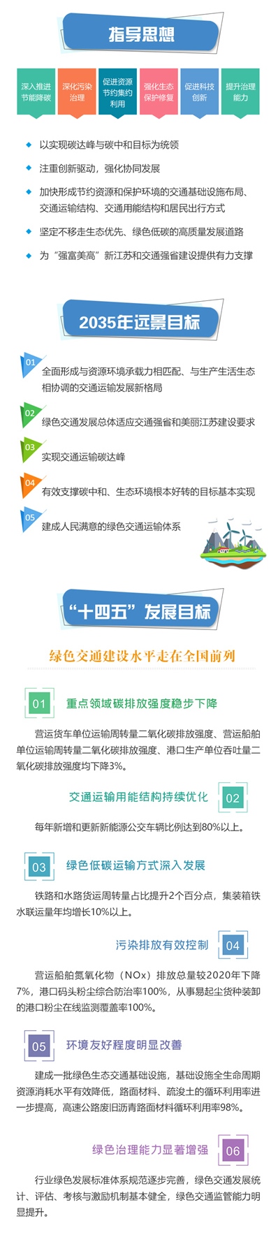 《規(guī)劃》提出“到2025年,綠色交通建設(shè)水平走在全國(guó)前列”的總體目標(biāo),堅(jiān)持走“生態(tài)優(yōu)先、綠色低碳”高質(zhì)量發(fā)展的新路,明確“低碳化、清潔化、生態(tài)化、長(zhǎng)效化”4條發(fā)展主線:推動(dòng)行業(yè)低碳化發(fā)展方面,重點(diǎn)解決運(yùn)輸裝備清潔化發(fā)展、公路貨運(yùn)和社會(huì)車(chē)輛的碳減排問(wèn)題,支撐碳達(dá)峰目標(biāo)的實(shí)現(xiàn);推動(dòng)行業(yè)清潔化發(fā)展方面,以港口、船舶、營(yíng)運(yùn)車(chē)輛和公路建設(shè)為重點(diǎn),開(kāi)展交通運(yùn)輸行業(yè)污染深度治理,促進(jìn)減污降碳協(xié)同效應(yīng)的發(fā)揮;推動(dòng)行業(yè)生態(tài)化發(fā)展方面,在健全完善綠色交通基礎(chǔ)設(shè)施地方標(biāo)準(zhǔn)體系的基礎(chǔ)上,布局實(shí)施一批省級(jí)綠色交通基礎(chǔ)設(shè)施建設(shè)工程,全面提升交通基礎(chǔ)設(shè)施的環(huán)境友好程度;推動(dòng)行業(yè)長(zhǎng)效化發(fā)展方面,全面建立以綠色發(fā)展為導(dǎo)向的制度標(biāo)準(zhǔn)體系、科技創(chuàng)新體系和監(jiān)督管理體系,提升綠色交通治理能力和水平。