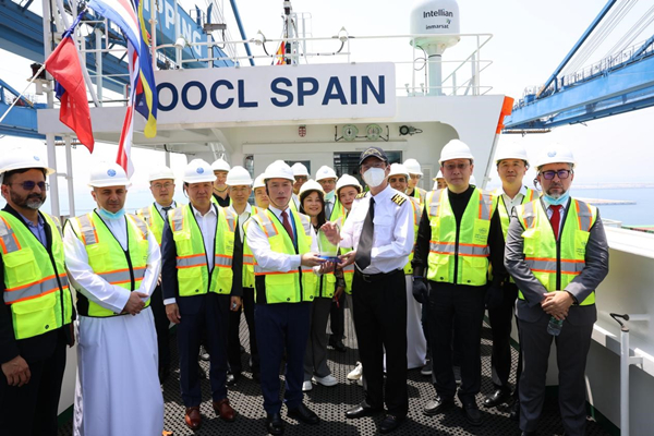 圖為與會(huì)嘉賓參觀“東方西班牙”輪。中遠(yuǎn)海運(yùn)港口阿布扎比碼頭供圖