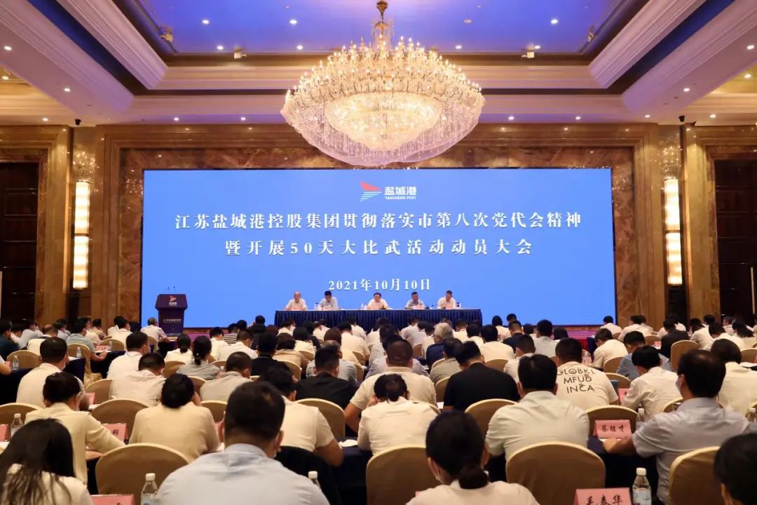 10月10日,集團(tuán)召開貫徹落實(shí)市第八次黨代會(huì)精神暨開展50天大比武活動(dòng)動(dòng)員大會(huì),集團(tuán)黨委書記、董事長、總經(jīng)理周正雄出席會(huì)議并講話。集團(tuán)黨委委員、紀(jì)委書記周旭東主持會(huì)議。集團(tuán)黨委委員、董事、副總經(jīng)理丁安廣、夏立新、陳正華,集團(tuán)機(jī)關(guān)全體工作人員,集團(tuán)各二級(jí)子(控)公司班子全體成員、各部門負(fù)責(zé)人,各內(nèi)河港區(qū)、水上服務(wù)投資公司班子全體成員,鹽城港引航站班子及部門負(fù)責(zé)人,集團(tuán)三級(jí)及以下子(控)公司主要負(fù)責(zé)人等參加會(huì)議。