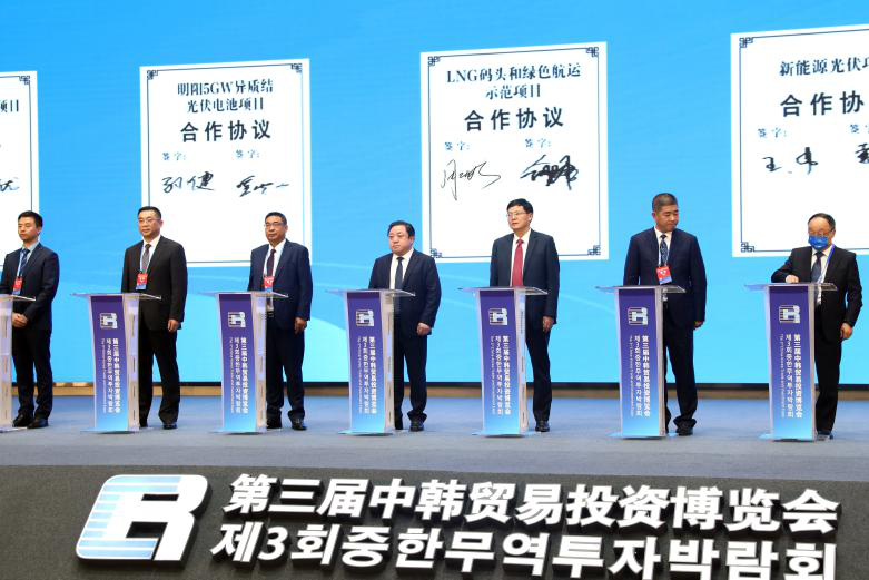 10月29日,第三屆中韓貿(mào)易投資博覽會暨江蘇—韓國企業(yè)家交流會在鹽城國際會展中心開幕。集團(tuán)黨委書記、董事長、總經(jīng)理周正雄參加會議,并代表集團(tuán)與中海油江蘇天然氣公司進(jìn)行簽約。