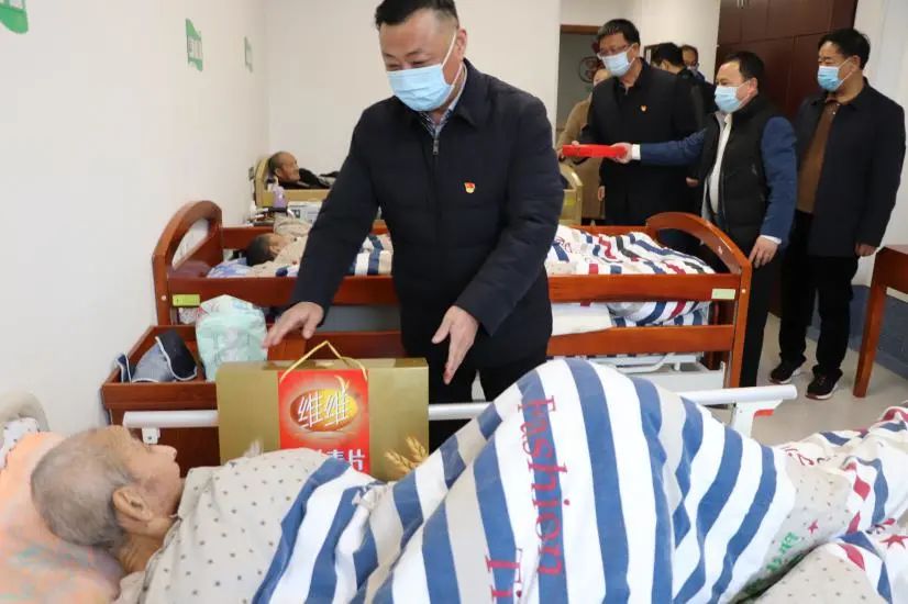 捐贈儀式結(jié)束后,周旭東一行還走進(jìn)康養(yǎng)病房,親切地給入住的老人們送上新春的祝福。