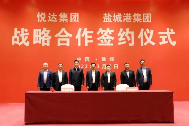 3月8日,悅達(dá)集團(tuán)與鹽城港集團(tuán)戰(zhàn)略合作框架協(xié)議簽約儀式在鹽舉行。悅達(dá)集團(tuán)黨委書記、董事長(zhǎng)張乃文,集團(tuán)黨委書記、董事長(zhǎng)、總經(jīng)理周正雄,悅達(dá)集團(tuán)黨委副書記楊玉晴,集團(tuán)黨委委員、紀(jì)委書記周旭東,集團(tuán)黨委委員、董事、副總經(jīng)理丁安廣出席活動(dòng)并鑒簽。悅達(dá)集團(tuán)黨委委員、常務(wù)副總經(jīng)理徐兆軍,集團(tuán)黨委委員、董事、副總經(jīng)理夏立新代表合作雙方上臺(tái)簽約。