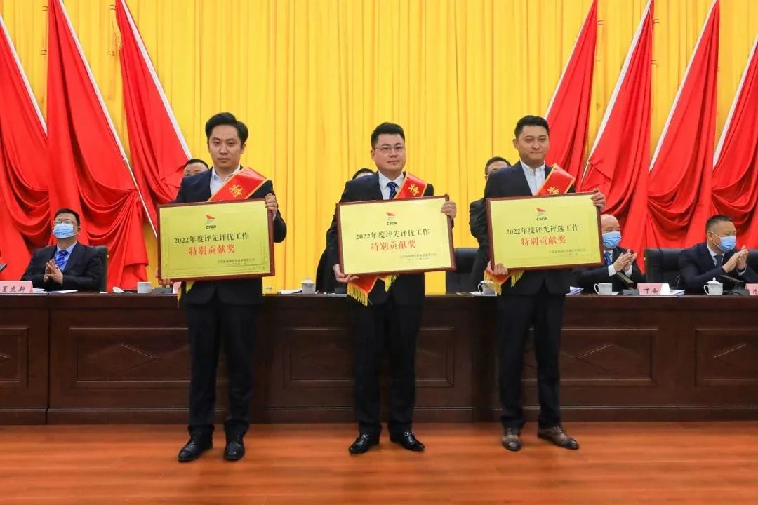 會(huì)議宣讀了關(guān)于表彰2022年度先進(jìn)集體及個(gè)人的決定,并為獲獎(jiǎng)代表進(jìn)行頒獎(jiǎng)。集團(tuán)經(jīng)理層及各二級(jí)公司主要負(fù)責(zé)同志現(xiàn)場(chǎng)簽訂“兩書(shū)一協(xié)議”,集團(tuán)各部門(mén)和鹽城港引航站遞交了責(zé)任狀,科技集團(tuán)、集團(tuán)項(xiàng)目管理部等7家單位和部門(mén)作表態(tài)發(fā)言。
