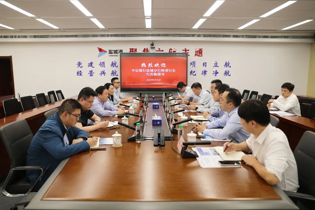 周正雄對韓勇一行的到來表示歡迎,對中信銀行鹽城分行在鹽城港發(fā)展過程中給予的關(guān)心和支持表示感謝,并介紹了鹽城港相關(guān)情況。他說,沿海發(fā)展是鹽城發(fā)展的重要增長極,港口發(fā)展是海洋經(jīng)濟發(fā)展的重要組成部分。集團自成立以來,統(tǒng)籌抓好基礎(chǔ)設(shè)施建設(shè)、資產(chǎn)資源調(diào)優(yōu)、生產(chǎn)經(jīng)營各項工作,多項經(jīng)營指標(biāo)取得突破,在全國沿海港口中保持爭先進位。當(dāng)前,集團積極策應(yīng)“水運江蘇”建設(shè),緊抓淮河入海水道改航道及鐵路支線開通等重大機遇,聚焦服務(wù)產(chǎn)業(yè)功能配套,加快航道、碼頭等10類能級提升項目建設(shè),全力打造“公鐵河?!倍嗍铰?lián)運體系。同時,加快推進淮河流域布點,積極構(gòu)建淮河沿線和黃河故道沿線港口“朋友圈”,形成“港口聯(lián)盟”,全力培育鹽城港未來的喂給港,為鹽城港邁入高質(zhì)量發(fā)展“黃金期”奠定堅實基礎(chǔ)。希望中信銀行鹽城分行一如既往地關(guān)心支持鹽城港發(fā)展,在“港口+”業(yè)務(wù)、資本運營等方面為鹽城港提供更多支持,進一步找準(zhǔn)合作的切入點,開發(fā)更多適合港口的金融產(chǎn)品,為鹽城港的發(fā)展提供強有力的金融支撐。
