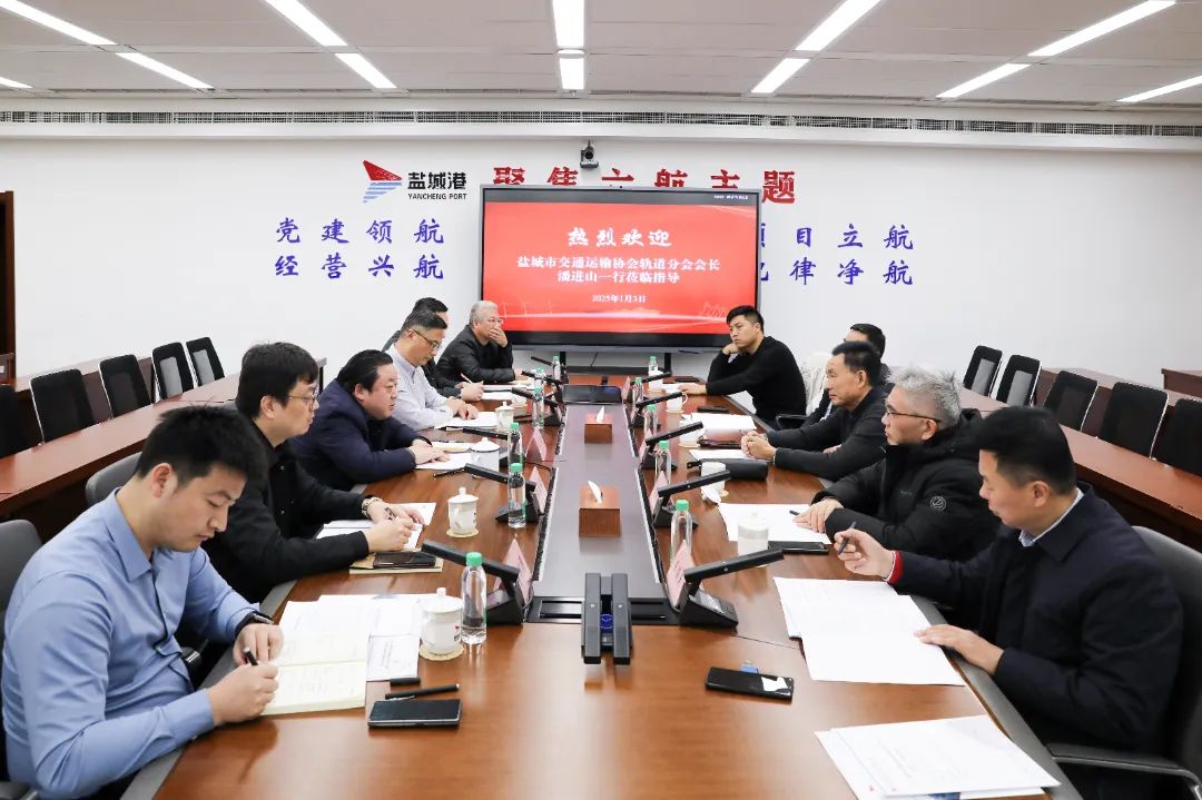 周正雄對潘進(jìn)山一行的到來表示歡迎,并介紹了集團(tuán)相關(guān)情況。他說,“公鐵水”多式聯(lián)運(yùn)項(xiàng)目是實(shí)現(xiàn)交通物流現(xiàn)代化、提升區(qū)域物流效率、促進(jìn)經(jīng)濟(jì)高質(zhì)量發(fā)展的重要舉措。近年來,鹽城港集團(tuán)錨定“全國公鐵河海聯(lián)動示范區(qū)”目標(biāo),先后完成灌河口5萬噸級航道整治、建湖港區(qū)“公鐵水”多式聯(lián)運(yùn)等一批重大交通項(xiàng)目,成功建設(shè)濱海港區(qū)汽車堆場,大力推進(jìn)“高速連港區(qū)、鐵路接港口、內(nèi)河通碼頭”,加快打造港口物流樞紐體系。大豐鐵路支線竣工后,大豐港可通過支線直接連接新長鐵路、隴海鐵路和寧啟鐵路,成為輻射中部地區(qū)和內(nèi)陸城市貨物運(yùn)輸?shù)闹匾龊Mǖ?。鹽城港將緊抓這一契機(jī),發(fā)揮鐵路在集疏運(yùn)體系中的重要支撐作用,加快推動疏港鐵路入港口專用線建設(shè),形成一體化運(yùn)營管理方案,積極探索“鐵轉(zhuǎn)水”“公轉(zhuǎn)水”“水水中轉(zhuǎn)”等物流模式,構(gòu)建廣覆蓋、高效率、低成本的物流體系,助力腹地企業(yè)優(yōu)化運(yùn)輸結(jié)構(gòu),降低物流成本,為全市經(jīng)濟(jì)社會發(fā)展貢獻(xiàn)力量。