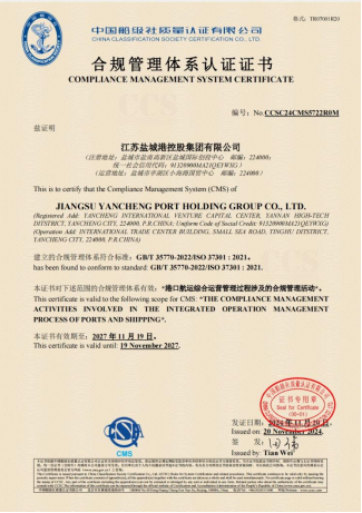 合規(guī)管理是企業(yè)穩(wěn)健發(fā)展的重要保障。2024年,集團成功獲得權威認證機構中國船級社評級公司頒發(fā)的省內港口行業(yè)首張合規(guī)管理體系認證證書,這標志著集團合規(guī)管理體系建設達到了新的高度,得到了行業(yè)與社會的廣泛認可。