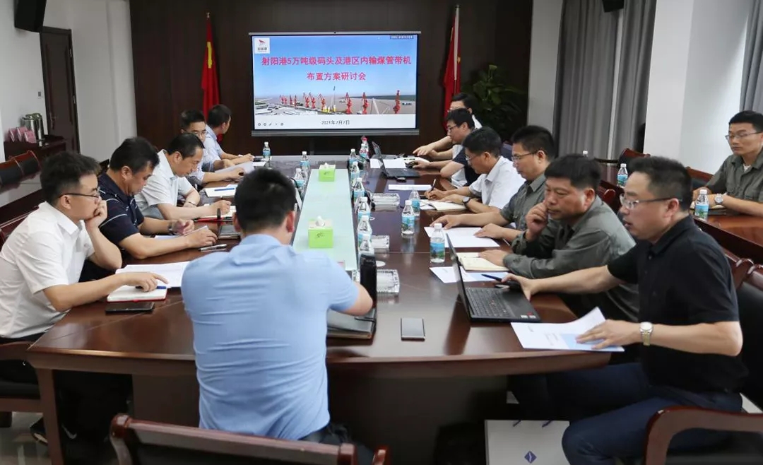 會議就射陽港區(qū)5萬噸碼頭6#、7#泊位的平面布置,以及電廠2×100萬千萬燃煤機組項目在港區(qū)內(nèi)的輸煤管帶機走向等問題進行了深入交流和討論,并對相關(guān)方案進行了優(yōu)化調(diào)整。