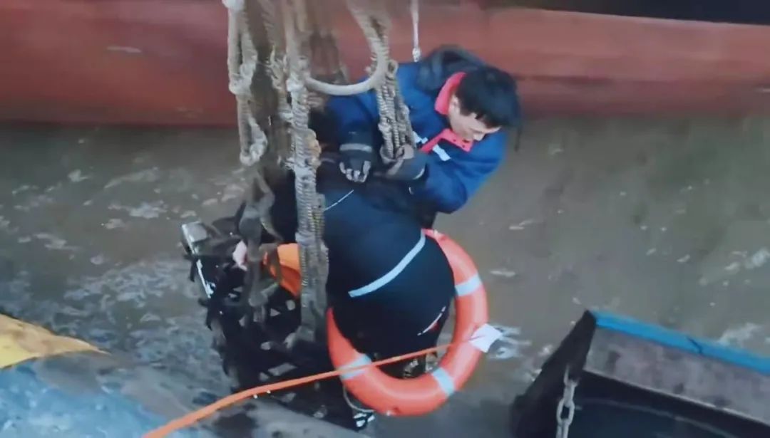 套好救生圈,拉緊救生繩,再配合船上吊機,一拖一拽之間成功將落水船員救上岸,整個救援過程僅僅用了5分鐘。據(jù)了解,落水船員目前生命體征正常,精神狀態(tài)良好。