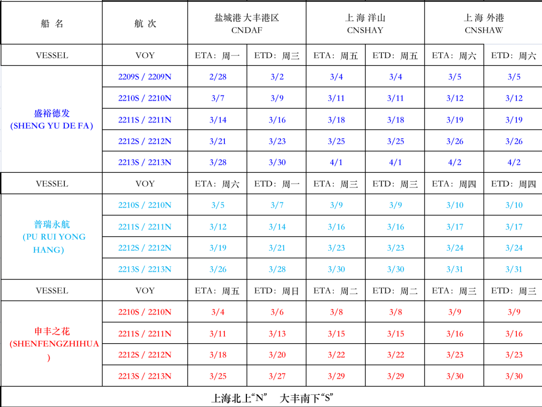 滬 鹽 專 線 2022 年 3 月 份? 船 期 表