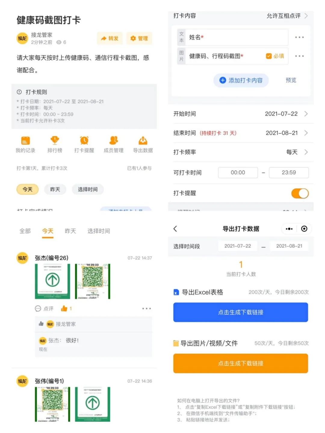 當(dāng)前,疫情防控形勢依舊嚴(yán)峻,面對防疫工作的艱巨繁雜,鹽城港港口公司散貨碼頭分公司堅持疫情防控和安全生產(chǎn)兩手抓、兩手硬、兩促進,創(chuàng)新性使用“接龍管家Pro”微信小程序,助力做好防疫工作。原本安全管理人員每天要花3小時左右統(tǒng)計所有職工的信息,現(xiàn)在僅用2分鐘時間就能完成檔案登記的所有流程,大大提高了登記效率。