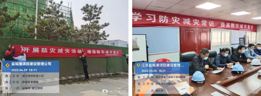 項目公司緊扣“減輕災害風險,守護美好家園”活動主題,在各代管項目施工現(xiàn)場顯眼位置,通過懸掛宣傳橫幅等形式,普及防災減災知識,提高施工作業(yè)人員防災減災意識,積極營造防災減災良好氛圍,切實起到溫馨提示和警示教育的作用。同時組織召開項目部專題會議,要求各項目做好施工作業(yè)人員的防災減災知識培訓、應急演練及應急物資儲備工作,對相關要求進行再明確。