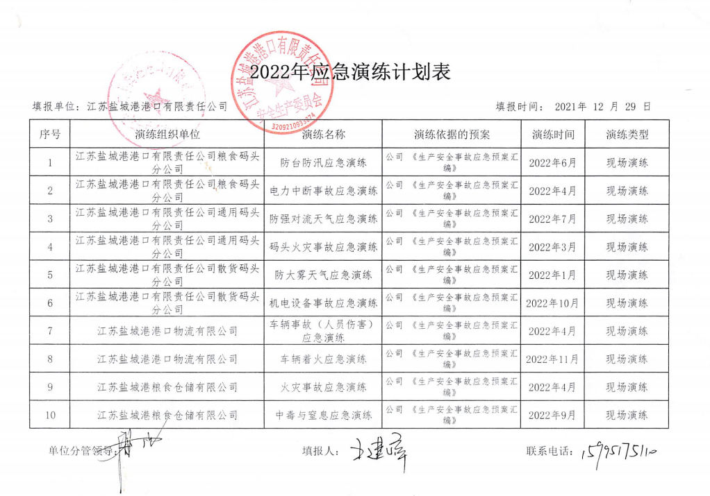 按照鹽城港集團(tuán)及上級主管部門安全管理要求,港口公司積極制定應(yīng)急演練方案,并嚴(yán)格按照演練方案時間節(jié)點,大力組織開展各項應(yīng)急演練工作。