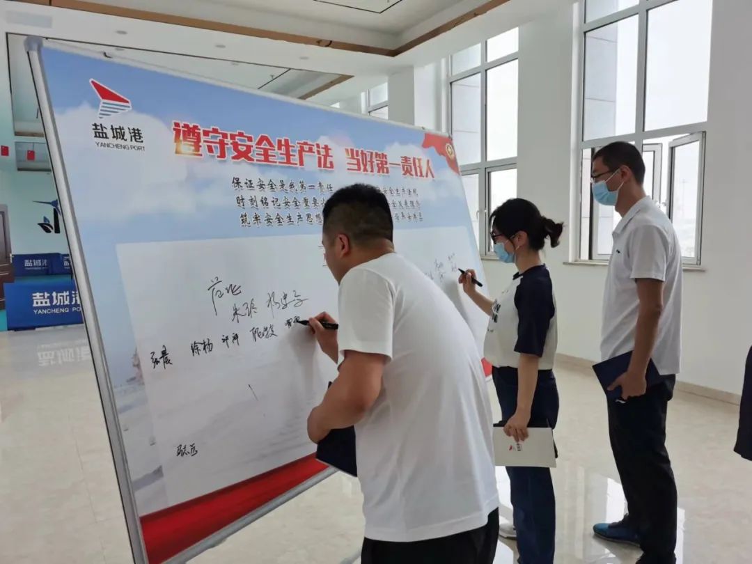 “我宣誓,保證安全是我第一責(zé)任,嚴(yán)格遵守安全生產(chǎn)法規(guī);時(shí)刻銘記安全重要論述,忠實(shí)踐行安全發(fā)展理念;筑牢安全生產(chǎn)思想防線,堅(jiān)決捍衛(wèi)和諧平安港區(qū)?!痹跀S地有聲的宣誓聲中,射陽(yáng)港區(qū)第一時(shí)間全面啟動(dòng)安全生產(chǎn)月各項(xiàng)活動(dòng),先后開展了專題宣講,并邀請(qǐng)相關(guān)專家分別開展安全法解讀和危險(xiǎn)作業(yè)安全管理培訓(xùn)。