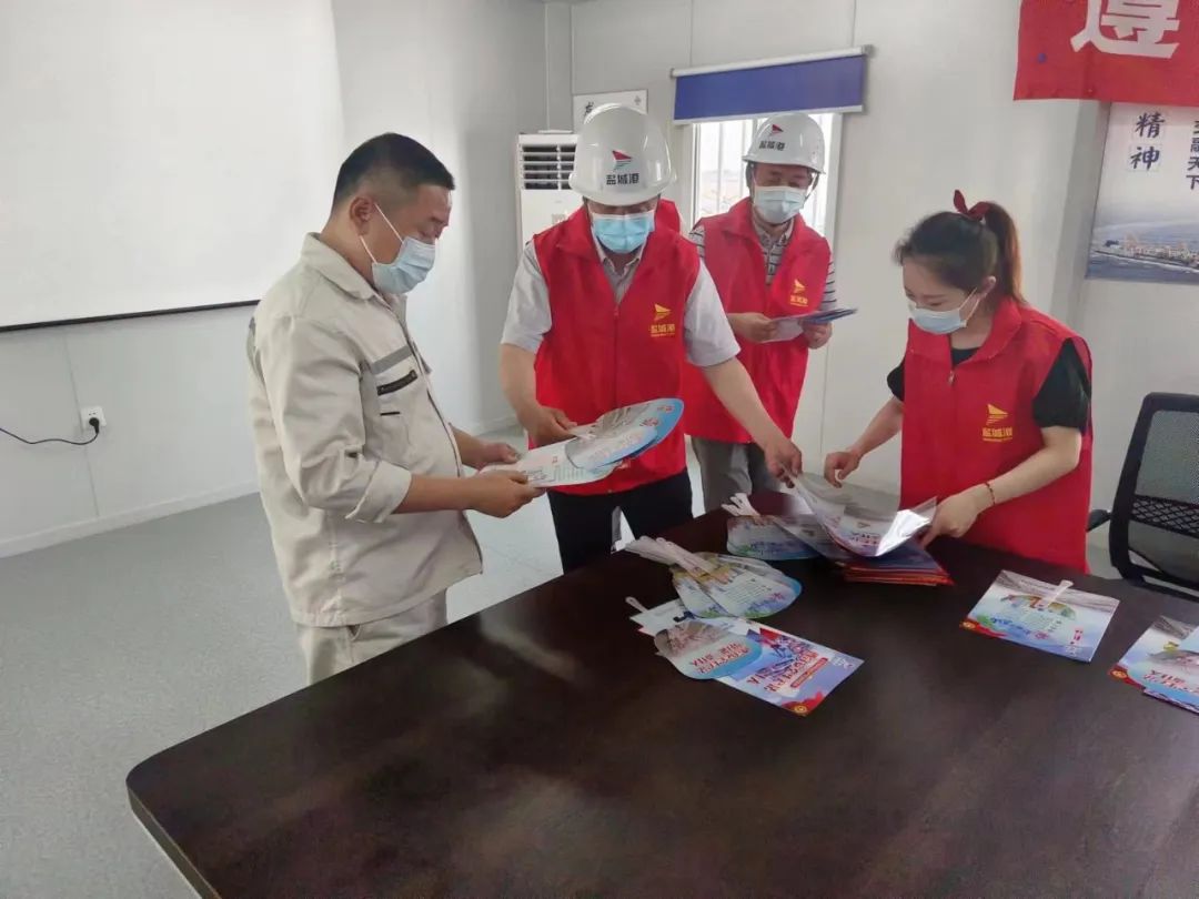 圍繞“安全生產(chǎn)月”活動(dòng)主題,把習(xí)近平總書記關(guān)于安全生產(chǎn)的重要論述,國(guó)務(wù)院近期發(fā)布的安全生產(chǎn)十五條硬措施,港口作業(yè)、工地施工的注意事項(xiàng)和生活中用電防火等安全知識(shí)等定制成彩繪折頁(yè)和小扇子,發(fā)放給全體員工,同時(shí)組織人員深入項(xiàng)目工地、碼頭作業(yè)一線、社區(qū)趕集日發(fā)放給社區(qū)群眾。直面基層一線,提高全員安全意識(shí),強(qiáng)化安全責(zé)任,在“最后一公里”上筑堤防潰。