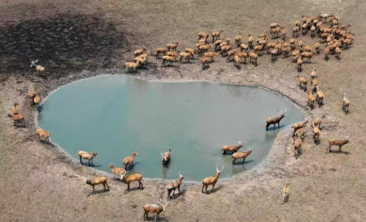 看麋鹿在淺水中的肆意奔跑