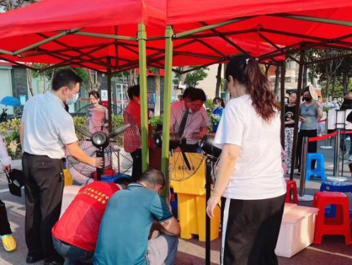 為筑牢疫情防控“最后一道關(guān)”,安全員嚴(yán)格執(zhí)行測(cè)溫、查碼、加強(qiáng)外來(lái)人員出入管理,不放過(guò)每個(gè)環(huán)節(jié),堅(jiān)決防止疫情輸入,積極配合社區(qū)工作,他們安裝隔離帶,搭建遮陽(yáng)棚,張貼一米線,在核酸檢測(cè)現(xiàn)場(chǎng)有序組織業(yè)主排隊(duì)進(jìn)行核酸采樣、測(cè)量體溫、協(xié)助行動(dòng)不便的老人順利檢測(cè)采樣,保障業(yè)主安全。