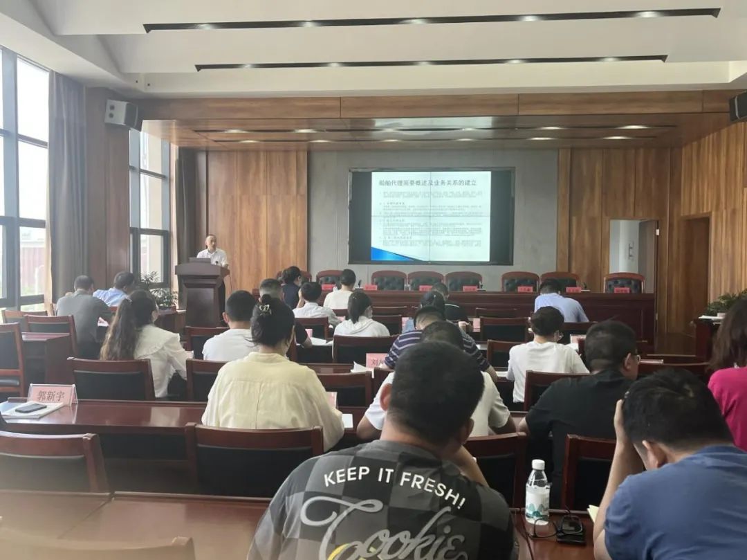 培訓重點講解了《國際船舶代理業(yè)務》《外貿(mào)進出口貨物代理》相關知識,圍繞船舶代理、業(yè)務關系、船舶港口使費、船舶抵港前后相關流程、船舶現(xiàn)場服務等方面業(yè)務進行詳細講解。同時還幫助大家加深了對船舶類型了解。