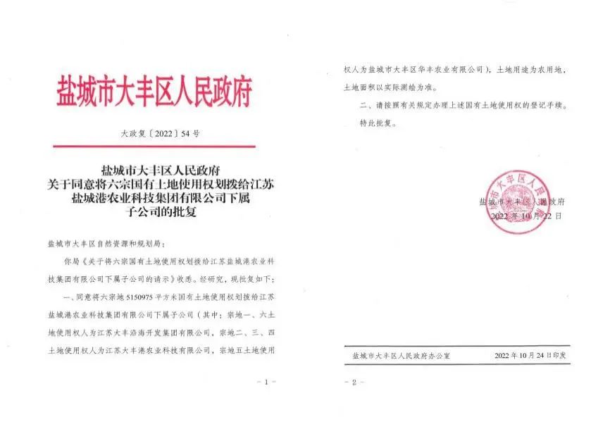 農(nóng)業(yè)科技集團(tuán)成立辦證工作小組,專項(xiàng)推進(jìn)辦證工作,積極主動(dòng)對(duì)接大豐區(qū)政府、港區(qū)管委會(huì)屬地政府及市自然資源和規(guī)劃局、上海農(nóng)場(chǎng)、鹽業(yè)公司等四址相鄰單位,協(xié)調(diào)屬地政府批復(fù)、四址確認(rèn)等權(quán)證辦理手續(xù),確保權(quán)證辦理工作有力有序推進(jìn)。