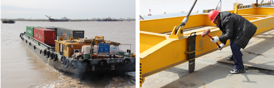“嗚……”隨著汽笛的一聲長(zhǎng)鳴,滿載集裝箱的“大港集003”號(hào)貨輪緩緩駛?cè)臌}城港響水港區(qū)5#泊位碼頭,貨船上的工作人員向岸邊拋出系泊纜繩固定貨船,碼頭上等待已久的吊機(jī)開(kāi)始作業(yè),有條不紊地將集裝箱裝卸到拖車(chē)上。至此鹽城港響水港區(qū)至重慶果園港內(nèi)河集裝箱班輪航線試運(yùn)營(yíng)成功,這是響水港區(qū)從“無(wú)”到“有”首次迎來(lái)的集裝箱貨輪。同時(shí)標(biāo)志著通榆河段阜寧至響水正式開(kāi)通內(nèi)河集裝箱運(yùn)輸,掀開(kāi)了鹽城港響水港區(qū)與阜寧港區(qū)“港港聯(lián)動(dòng)”的全新篇章。