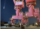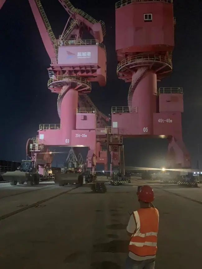 “5#門機(jī)入軌正?!薄靶凶邫C(jī)構(gòu)壓輪正?!薄盎剞D(zhuǎn)、起升、變幅機(jī)構(gòu)運(yùn)行正常”隨著現(xiàn)場指揮員對(duì)講機(jī)里傳來各機(jī)構(gòu)一切正常運(yùn)行的報(bào)告,經(jīng)過10個(gè)晝夜的連續(xù)奮戰(zhàn),鹽城港射陽港區(qū)碼頭門機(jī)移位作業(yè)宣告完美收官。