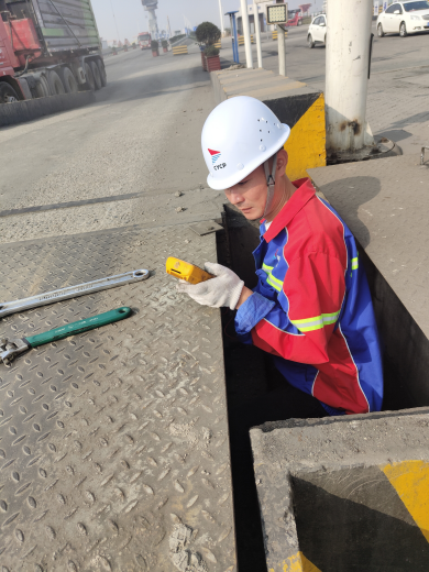 他停留在一臺(tái)地磅姥爺旁邊 偶爾會(huì)觸碰撫摸