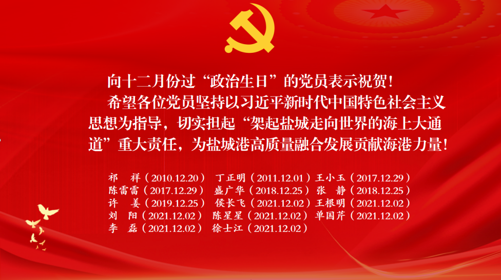 一個承諾,一顆初心,一生信仰,我心向黨,初心永摯。射陽港區(qū)全體黨員干部將永葆共產(chǎn)黨員的政治本色,堅定信仰鑄忠誠,立足崗位創(chuàng)新功。在新的一年里。射陽港區(qū)黨總支也將用活“政治生日”形式,與支部書記上黨課、實境教育相結(jié)合,讓全體干部職工感受到集團黨委、港區(qū)黨組織的溫暖關(guān)懷。