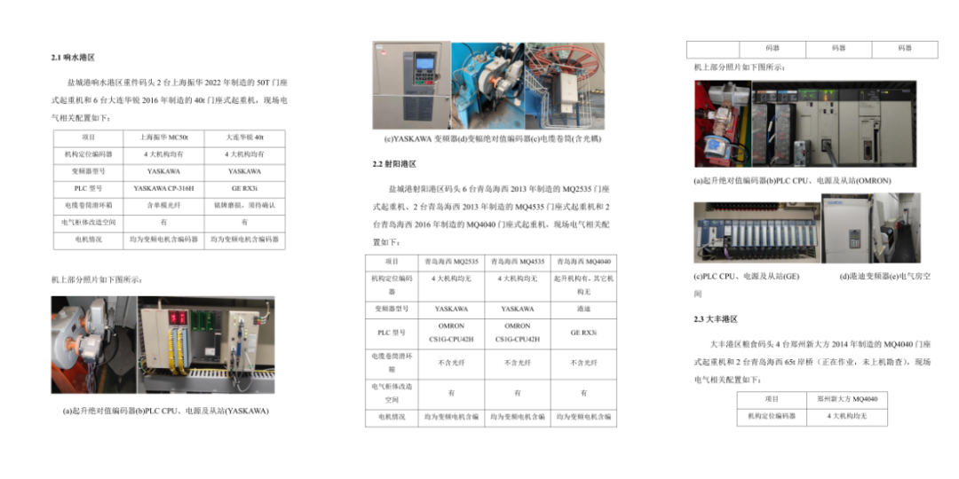 2024年以來,科技集團(tuán)已完成對(duì)四大海港及陸港下轄所有生產(chǎn)性泊位56臺(tái)門座式起重機(jī)、7臺(tái)固定吊、4臺(tái)卸船機(jī)、2臺(tái)岸邊集裝箱起重機(jī)、10臺(tái)軌道式集裝箱門式起重機(jī)、4臺(tái)軌道式門式起重機(jī)等共計(jì)80余臺(tái)大型港作機(jī)械的現(xiàn)場(chǎng)勘查,其中,大豐港區(qū)自動(dòng)化集裝箱堆場(chǎng)4臺(tái)軌道式門式起重機(jī)通過智能化改造已實(shí)現(xiàn)自動(dòng)化作業(yè)。