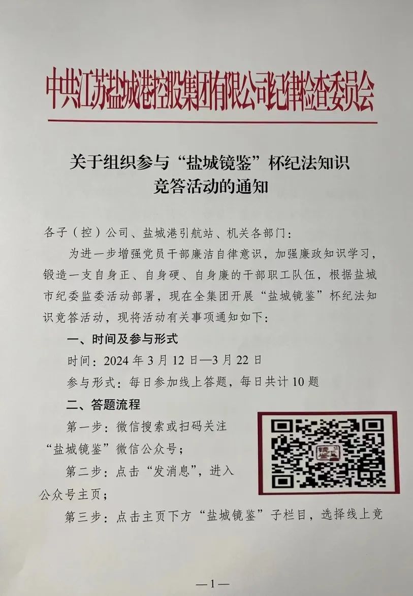 (組織開展“鹽城鏡鑒”杯紀(jì)法知識競答活動)