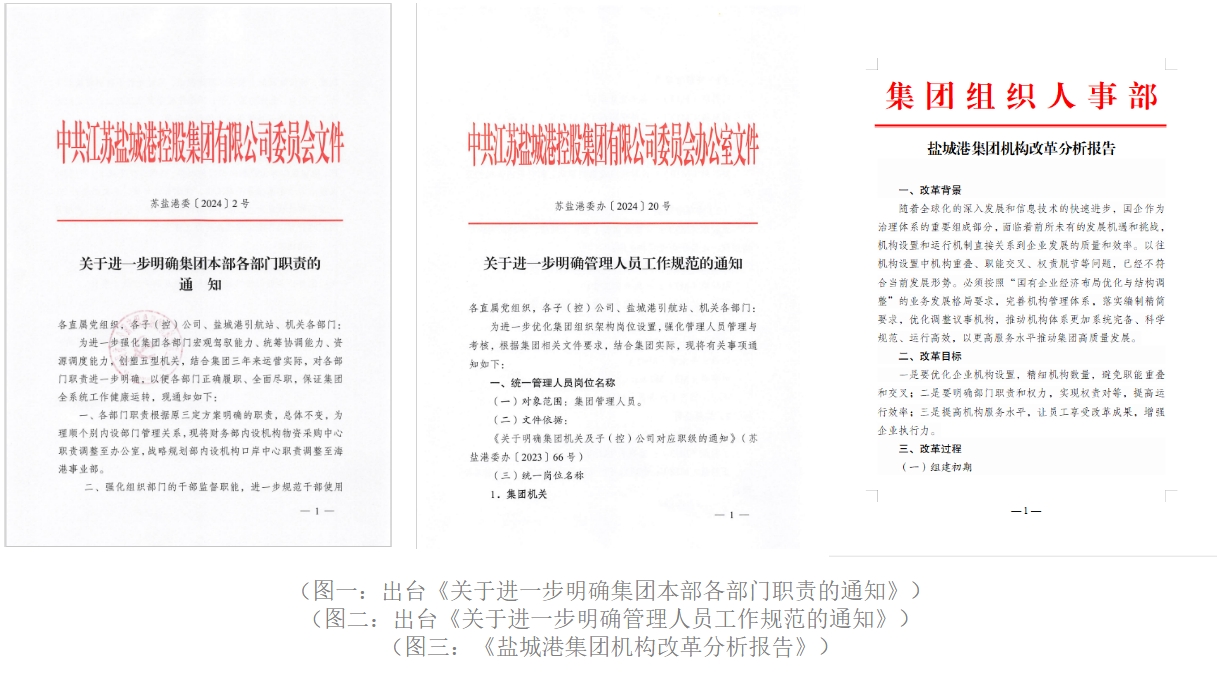 搭建高效化組織架構(gòu),優(yōu)化管理體制。出臺《關(guān)于進(jìn)一步明確集團(tuán)本部各部門職責(zé)的通知》《關(guān)于進(jìn)一步明確管理人員工作規(guī)范的通知》,科學(xué)優(yōu)化集團(tuán)組織架構(gòu),健全與科學(xué)規(guī)范要求相適應(yīng)的機(jī)構(gòu)編制管理體系,推動集團(tuán)機(jī)構(gòu)職能體系更加系統(tǒng)完備、科學(xué)規(guī)范、運(yùn)行高效,明確集團(tuán)機(jī)關(guān)及子(控)公司對應(yīng)職級,統(tǒng)一管理人員崗位名稱,進(jìn)一步規(guī)范人員管理。形成《鹽城港集團(tuán)機(jī)構(gòu)改革分析報告》,系統(tǒng)總結(jié)鹽城港集團(tuán)成立以來機(jī)構(gòu)改革情況,明確下一步改革工作計劃。