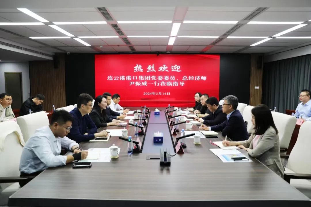 袁欣對尹振威一行的到來表示歡迎,并介紹了集團(tuán)相關(guān)情況。她說,鹽城港自成立以來,緊緊圍繞規(guī)劃、投資、建設(shè)、管理、運(yùn)營“五大任務(wù)”,一體部署一體推進(jìn)一體落實(shí),堅(jiān)持以“資源變資產(chǎn)、資產(chǎn)變資金、資金資本化、資信增實(shí)力”為目標(biāo),加快推進(jìn)改革各項(xiàng)工作,努力實(shí)現(xiàn)國有資源資產(chǎn)效益最大化,為集團(tuán)健康可持續(xù)發(fā)展奠定堅(jiān)實(shí)基礎(chǔ)。當(dāng)前,集團(tuán)正積極打造以大豐港區(qū)為主的全國沿海農(nóng)牧林產(chǎn)業(yè)特色港,加快推進(jìn)“公鐵河?!倍嗍铰?lián)運(yùn)建設(shè),著力推動(dòng)港口資源優(yōu)化整合,營造良好營商環(huán)境,努力實(shí)現(xiàn)港產(chǎn)城融合發(fā)展。希望連云港港口集團(tuán)能夠一如既往地關(guān)心和支持鹽城港的發(fā)展,持續(xù)深化合作交流,以產(chǎn)業(yè)互融推動(dòng)供需結(jié)構(gòu)升級,以互聯(lián)互通實(shí)現(xiàn)運(yùn)貿(mào)一體發(fā)展,共同為高質(zhì)量推動(dòng)“水運(yùn)江蘇”建設(shè)作出積極貢獻(xiàn)。