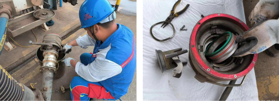 港儲石化每日裝卸車量高峰時(shí)期達(dá)2000噸,裝卸車臺API干式閥密封圈屬輸臂管與槽車連接的重要部件,因貨種化學(xué)性介質(zhì)具有腐蝕性,易發(fā)生滲漏,存在安全隱患從而影響正常生產(chǎn)。