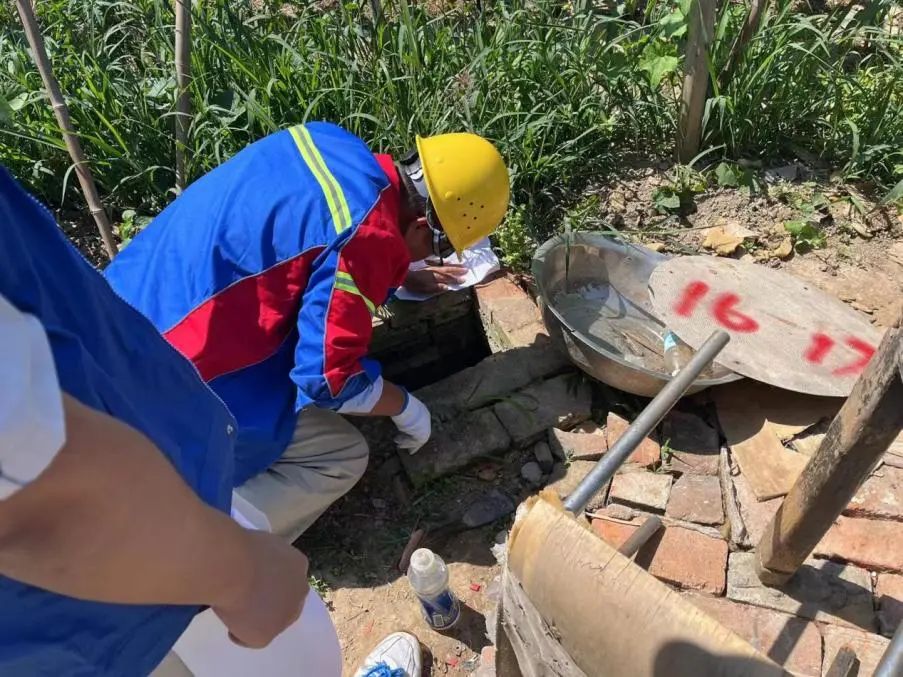 (表井內(nèi)有水,為清楚抄表,抄表員正在抽水中)