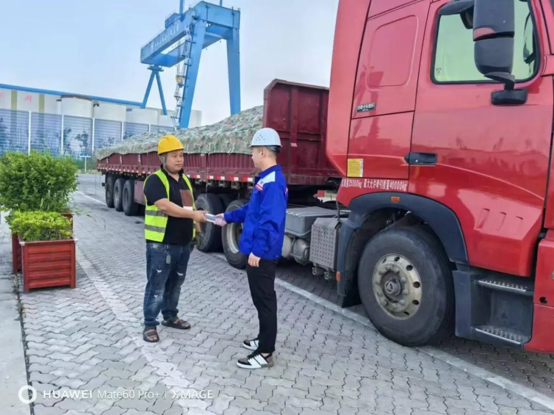 為進(jìn)一步做好現(xiàn)場安全管理工作,對運(yùn)輸車輛作業(yè)前進(jìn)行安全檢查,要求司機(jī)嚴(yán)格按照港區(qū)限速要求行駛,尤其是磅房、轉(zhuǎn)彎處,必須提前減速,避免急剎。與此同時(shí),為防止土石遺撒,最大程度減少對碼頭、道路及行駛環(huán)境的安全影響,采取“動(dòng)態(tài)巡查+人工清掃+機(jī)械配合”的作業(yè)模式,對每臺運(yùn)輸車輛進(jìn)行嚴(yán)密苫蓋,在車輛運(yùn)輸路線上布置清掃車,通過“人工掃帚+清掃車”清掃等組合方式,確保港區(qū)環(huán)境干凈整潔。
