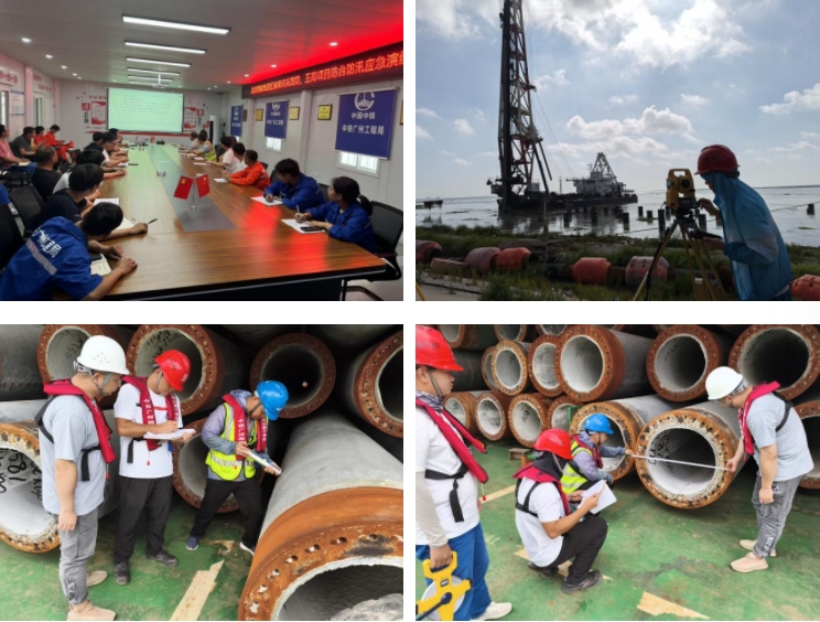 在項目進程中,聯(lián)合監(jiān)理單位全面檢查船舶狀態(tài)和管樁質(zhì)量,督導技術(shù)人員做好船員和工人的安全技術(shù)交底工作,制定合理的作業(yè)程序,全程跟船督導;施工人員嚴格執(zhí)行方案、設(shè)計文件及技術(shù)規(guī)范要求,一絲不茍完成作業(yè)內(nèi)容,確保安全有序推進趁潮沉樁保證作業(yè)連續(xù)性。