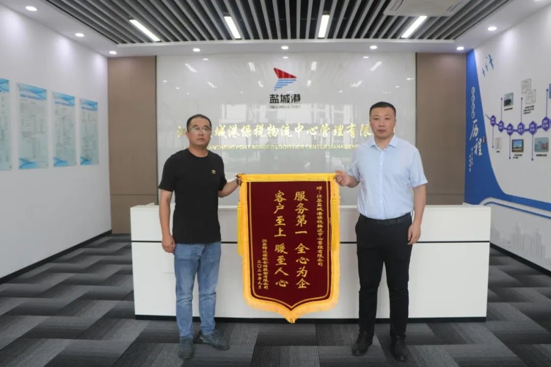 “終于把錦旗親自送到,十分感謝!”近日,江蘇錦達(dá)保稅倉儲(chǔ)股份有限公司送來一面印有“服務(wù)第一 全心為企 客戶至上 暖至人心”的錦旗,來表達(dá)對(duì)鹽城港保稅物流中心“想客戶之所想,急客戶之所急”服務(wù)理念的誠摯感謝。這份珍貴的禮物,是激勵(lì)鹽城港保稅物流中心未來繼續(xù)追求卓越、不懈前行的強(qiáng)大動(dòng)力。