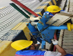 自動(dòng)化軌道吊電纜轉(zhuǎn)盤電纜導(dǎo)向滑輪改造現(xiàn)場(chǎng)