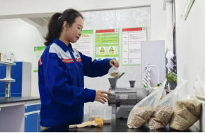“燒杯、測(cè)量?jī)x、毛刷”是化驗(yàn)員檢驗(yàn)大豆、大麥等糧食貨種必不可少的“冬日三件套”。取樣、稱重、測(cè)量等流程全靠它們,它們是保證檢測(cè)結(jié)果精準(zhǔn)無誤的必備“法寶”,糧食進(jìn)出筒倉(cāng)的背后都有大量的數(shù)據(jù)支撐,它們就像定海神針一樣為港口建設(shè)保駕護(hù)航。